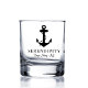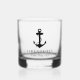 Ein klassisches Whiskey-Glas zum Thema Wassersport für Ihr Boot, das eine schwarze Abbildung eines Ankeres und Seils zeigt und mit dem Namen und der Lage Ihres Bootes in eleganter Schrift und Typografie.