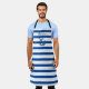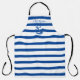 Das schöne klassisch nautische Blau bildet Streifen über eine personalisierte Schürze. Schreiben Sie den gewünschten Namen zwischen den Leerzeichen, in denen die Vorder- und Endübergänge verlassen werden (wählen Sie nur den Namen aus, um Ihren eigenen einzufügen). Passen Sie den Wortlaut des Ankerzeichens an, wenn Sie möchten.