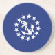Ein nautisches Symbol der amerikanischen Yacht auf einem marineblauen Dekor. Ein sportliches, individuelles nautisches Geschenk für sich selbst oder für jemanden, der etwas Besonderes am oder am Boot hat.