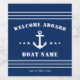 Set von nautischen Themen, personalisierte Weinflaschen Etiketten mit einem maßgeschneiderten Boot Anker und Sterne mit "Welcome Abard", Ihr Bootsname, der Weintyp und das Jahr auf klassischem Marineblau.