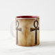 Diese von Ankh entworfene Tasse ist typisch für das ägyptische Symbol des Ankh, das Leben und Unsterblichkeit darstellt. Diese Tasse hat eine elegante, moderne Form und ein traditionelleres Design der Keramik. Das Ankh-Symbol selbst wird sichtbar angezeigt und auf der Oberfläche gedruckt. Es kann in Gold, Schwarz und Braun gerendert werden, um einen auffallenden Kontrast zur weißen Grundfarbe der Tasse zu schaffen. Insgesamt ist eine von Ankh entworfene Tasse nicht nur ein praktischer Bestandteil, um Getränke zu genießen, sondern auch ein Kunstwerk, das die reiche Geschichte und Symbolik des alten Ägypten widerspiegelt.