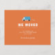 Eine lustige illustrierte bewegende Ansage Postkarte. Lass deiner Familie und Freunden, wo du hingezogen bist! Die Hintergrundfarbe auf der Vorderseite der Karte ist anpassbar.