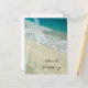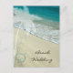 Die Tropical Beach Wedding Ankündigung Datum freihalten Postcard informiert Sie über Ihre anstehenden lässigen und dennoch schicken Nuptials an der Küste oder auf der Insel. Passen Sie es mit den persönlichen Namen der Braut und des Bräutigams, dem Datum und dem Ort der Ehe an. Diese maßgeschneiderte Hochzeit am Strand behalte die Dattelkarte mit einem landschaftlichen Naturfoto des türkisfarbenen oder aqua-blauen Ozeans an einem weißen Sandstrand mit Palmen und wirrem Design an der Ecke.