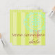 Kühne, chartreuse vertikale Streifen auf der Vorder- und Rückseite mit einem blauen Design auf der Vorderseite dieses Gerettet Day Template helfen eine kühne, farbenfrohe Ankündigung für Ihren besonderen Tag, genießen!