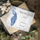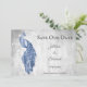 Persönliche Hochzeitsankündigung mit einem Blue Peacock Save the Date. Das Design der Ankündigung besticht durch einen eleganten Pfau vor zartem Laub, Grunge und Text, den Sie mit Ihren Hochzeitstermin-Details personalisieren können. Zusätzliche Ankündigung Datum freihalten für dieses Design in verschiedenen Farben verfügbar.