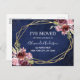 Burgundy, Navy Blue and Blush Pink Moderne und elegante florale Watercolor Imitats Golfoil Geometric Spring I’ve Moved New Zuhause oder New Address cards - beinhaltet eine schöne und elegante Schrift Typografie mit modernen botanischen Blume und Grün für die besondere New Zuhause oder New Address Feier.