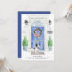 Mit unserer stilvollen Ankündigung kündigen Sie Ihre neue Adresse mit einem französischen Bulldog, einer blauen Eingangstür, einer Begrüßungstür, einem Schild mit Schiefer, Topiaries und einem blumengeschmückten Set auf grauem Ziegelboden an.