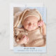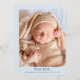 Moderne und einfache Geburtsankündigungskarte mit 2 Fotos (vorne und hinten). Auf der Vorderseite tragen Sie den Namen und die Geburtsinformation ein. Fügen Sie auf der Rückseite Ihre benutzerdefinierte Nachricht hinzu.