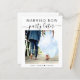 Eine preisgünstige, moderne Einführung oder eine kleinere Hochzeitsankündigung, um Familie und Freunde darüber zu informieren, dass sich Ihre Hochzeitspläne geändert haben, sodass Sie die Zahl der Hochzeitsgäste bei Ihrer Hochzeit erhöhen oder verringern müssen, aber dass Sie in Zukunft ein Party der Feier veranstalten werden. Die Vorderseite zeigt Ihr Foto und "Verheiratet Now, Party Spater" in einer Mischung aus einfacher Typografie und trendiger Schrift. Unter Ihrem Foto können Sie Ihre Vornamen und das Hochzeitstermin hinzufügen. Auf der Rückseite können Sie Ihre Nachricht detaillierter und Ihre Namen in einem signaturähnlichen Skript personalisieren.