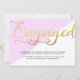 Erzählen Sie der Welt, dass Sie mit diesen trendigen Ankündigungen verlobt sind, die einen modernen rosa-weißen Hintergrund mit schicken Goldfolien-Schriftzeichen aufweisen.