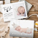 Die einfache Ankündigung der New Baby Birth Card enthält einen wunderbaren Overlay-Text, der den Namen und die Geburtsdaten des Neugeborenen zeigt. Auf der Rückseite haben Sie die Möglichkeit, ein zweites Bild und eine kurze Nachricht einzufügen. Das Design ist elegant einfach und betont die fröhliche Gelegenheit, die neue Ergänzung der Familie willkommen zu heißen. Feiern Sie die Ankunft des Babys mit dieser bezaubernden Geburtsankündigungskarte, die alle wesentlichen Details wunderbar anzeigt und gleichzeitig einen perfekten Sake für Ihre Lieben bietet. Teilen Sie das Glück mit dieser herzzerwärmenden und personalisierten Karte.