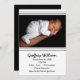 Moderne stilvolle Baby-Geburt-Ankündigung in knalligem Weiß mit dünnen schwarzen Linien, die das Bild des Babys rahmen. Personalisieren Sie den schwarzen Text mit den Geburtsinformationen Ihres Babys und ersetzen Sie ihn durch Ihr Foto für Neugeborene. Eine wunderschöne Art, das Neugeborene mit Freunden und der Familie zu zeigen.