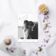 Diese einfache Hochzeitsankündigung im Foto sieht trendig und stilvoll aus. Die Schriftzeichen "Jetzt sind wir verheiratet" und einige Namen sind in Schwarz-Weiß-Fotografien des Paares zu sehen. Diese doppelseitige Einstiegskarte ist leicht mit den Fotografien, Namen und benutzerdefinierten Nachrichten zukünftiger Braut- und Bräutigams zu gestalten.