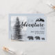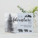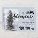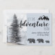 Abenteuer erwartet, rustikale Wälder trägt Schwangerschaftsankündigung in weichen Pastellblau graue Farbe, mit einem majestätischen Waldkiefer und Silhouette Berg. Für Kinder und Jugendliche mit Dusche.
