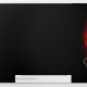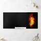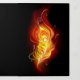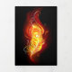 Helle Pfauenfeder aus Feuer und Flamme auf schwarzem Hintergrund.