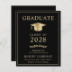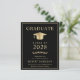Elegante und preisgünstige Ankündigung von Black Uni-Abschluss mit einer goldenen Graduiertenkappe und schlichter, moderner Goldtypografie für den Namen, das Klassenjahr, die Uni oder die Universität, den Abschluss und die Hauptfach- oder Ehrengänge.