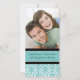 Verlobung Ankündigung Foto-Karte in elegantem türkisblau, schwarz-weiß klassischen Blumendampf-Muster, anpassbar mit Ihren Namen, die perfekte Weise, um Ihre Verlobung zu verkünden Freunde und Familie. Muster in einer breiten Palette von passenden Hochzeitsprodukten erhältlich.