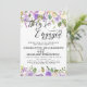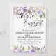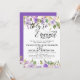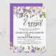 Schöne ultraviolette Rose mischen sich mit cremefarbenen weißen Blume und schaffen ein wunderschönes Blumendesign. Sie sind verlobt in einem großen fließenden Drehbuch geschrieben. Der Rest des Textes ist ein klassischer Serif-Schriftart. Die Rückseite der Einladung ist so hübsch wie die Vorderseite. Es ist ein reichhaltiges königliches lila mit den winzigen weißen Punkten. Das Blumendesign von vorne wird auf der Rückseite fortgesetzt. Der Text lässt sich leicht anpassen.