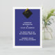 Klassische Graduierungsankündigungen für den Absolvent mit eleganter schwarzer Kappe und goldener Tassel auf schulisch-blauem Hintergrund.