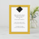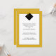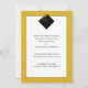 Klassische Graduierungsankündigungen für den Grad mit eleganter schwarzer Kappe und goldener Tassel auf goldenem Hintergrund.