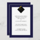 Klassische Graduierungsankündigungen für den Grad mit eleganter schwarzer Kappe und goldener Tassel auf marineblau-blauem Hintergrund.