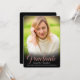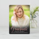 Schwarze Vignette mit Rose goldfarbenem Tonüberlagseffekt und formelles, elegantes Drehbuch "Graduate", volles Cover Foto auf der Vorderseite und relevante Details der Graduierungsparty auf der Rückseite. Schattet automatisch die perfekten Bereiche des Bildes.