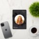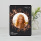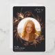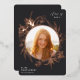 Ein elegantes Abschluss-Ankündigungsdesign mit einem Foto Ihres Absolventen umgeben von einem blumengeschmückten Rahmen aus Rose, goldenen Lilien und Blattwerk auf einem reichen kohleschwarzen Hintergrund. Personalisieren Sie Ihren Absolvent mit dem Namen, der Schule und dem Abschluss Jahr. Fügen Sie der Rückseite eine persönliche Nachricht und ein zusätzliches Foto hinzu.