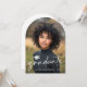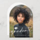 Bogenförmige Foto-Ankündigungskarte mit Ihrem Foto, einem Graduierungsdeckel und dem Text "graduate" in einem modernen, eleganten Drehbuch-Schriftart. Fügen Sie auf der Rückseite ein zusätzliches Foto und eine benutzerdefinierte Meldung hinzu.