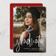 Feiern Sie Ihren Uni- oder Highschool-Abschluss mit dieser vertikalen Abschluss-Ankündigung eines Fotos. Das moderne Drehbuch "graduate" auf der Vorderseite in Weiß ist perfekt für einen trendigen Abschluss. Der Hintergrund ist mit einem subtilen Muster rau, aber die Farbe kann in jede Schulfarbe geändert werden, indem man auf "Anpassen" klickt.