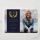 Eine formelle, aber moderne Abschluss Foto Ankündigung, um diejenigen zu feiern, die einen Juris Doktor Abschluss. Auf der Vorderseite der Ankündigung befindet sich ein vollblütiges Foto mit Farbüberlagerung. Das Jurastuhl (mit der Abkürzung 'JD'), der Lorbeerkranz und der Vorlagentext können in einer Folienfarbe Ihrer Wahl gedruckt werden. Die Rückseite bietet einen soliden Hintergrund und Vorlagentext für eine längere Meldung. Wenn Sie es vorziehen, keinen Text auf der Rückseite einzufügen, löschen Sie ihn einfach vor der Bestellung. Wenn Sie ein Foto auf der Kartenrückseite bevorzugen, löschen Sie sowohl den farbigen Hintergrund als auch den Vorlagentext und laden Sie Ihr eigenes Foto hoch. Das Design ist in verschiedenen Farben in meinem Geschäft, in Versionen ohne die Abkürzung "JD", sodass sie für jede rechtliche Qualifikation angepasst werden können, und auch in nicht-foliengepressten Versionen. Andere Designs ohne farbiges Overlay zwischen Foto und Text sind ebenfalls verfügbar (in Folie und nicht in Folie).