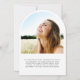Elegante, bogenförmige Ankündigung mit dem Foto des Absolventen, "Graduate" in einer stilvollen Schrift, und ihren Namen, Klassenjahr und Schule in einfacher, moderner Typografie. Fügen Sie ein zusätzliches Foto und Ihre personalisierte Ankündigung auf der Rückseite hinzu.