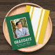 Diese Foto Abschluss-Anzeigenkarte im Varianzstil hat bearbeitbare Hintergrundfarben. Um die Vordergrundfarbe zu ändern, wählen Sie die Ebene "GraduationFront2" und ändern Sie die Farbe. Um die hintere Hintergrundfarbe zu ändern, wählen Sie einfach Hintergrund und ändern Sie die Farbe. Dies ist eine großartige Möglichkeit, Ihre Ankündigung an Ihre Schulfarben anzupassen. Personalisieren Sie es, indem Sie den Platzhalter-Text ersetzen und das Foto für die Auswahl/den Platzhalter durch Ihr eigenes Foto ersetzen. Für weitere Optionen, wie zum Beispiel den Schriftart zu ändern und ihn zu vergrößern oder zu verändern, klicken Sie auf den Button "Anpassen". *Bitte beachten Sie, dass das Zazzle-Wasserzeichen, das in der Zoomvorschau angezeigt wird, NICHT auf dem gedruckten Endprodukt erscheint. © Rosewood and Citrus