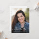 Diese Abschluss-Ankündigung enthält einen einfachen Script-Schriftart. Der gesamte Text kann auf der Vorder- und Rückseite der Karte angepasst werden. Fügen Sie ein Foto des Absolventen, um die perfekte Abschlussfeier Einladung zu schaffen.