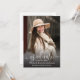 Elegante Script Graduate Simple Foto Abschluss Announcement-Karte mit Skript-Schriftart voll blute Portrait-Foto auf der Vorderseite mit Namen und Abschluss Details. Die Rückseite hat ein zweites Foto mit weiteren Details. Klicken Sie auf die Schaltfläche Bearbeiten, um dieses Design anzupassen.