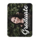 Einfache und stilvolle Ankündigungsmagnet mit dem waagerechten Foto des Absolventen mit "Graduate" in einem fett-weißen Drehbuch. Personalisieren Sie den Magneten für den Foto-Abschluss, indem Sie den Namen, den Schulnamen und das Abschluss-Jahr des Absolventen hinzufügen.