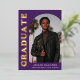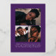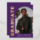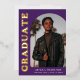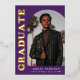 Stilvolle und trendige Ankündigung des Abschlusses mit dem Foto des Absolventen auf der Vorderseite mit einem Offset-Bogen-Foto. "Graduate" wird in fett gedruckter Goldfolie auf einem lila Hintergrund dargestellt. Personalisieren Sie die Titelseite der Ankündigung des Abschlusses des Erzbischofs, indem Sie den Namen, die Schule und den Abschluss des Absolventen hinzufügen. Die Karte kehrt zurück, um weitere 3 Fotos mit Platz für den benutzerdefinierten Text anzuzeigen, wie z.B. künftige Unis, Karrierepläne, Angaben zur Graduierungspartei, etc. Die Goldfolie-Abschluss-Ankündigung ist sowohl für Absolventen der Highschool als auch für Absolventen der Uni ideal.