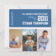 Ankündigung des Abschlusses mit 3 Fotos in Blau
