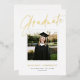 Diese schicke Abschluss-Ankündigung besticht durch einen klassischen, weißen Hintergrund (anpassbar), elegante Typografie und ein quadratisches Foto. Das wunderschöne Kalligraphieskript "Graduate" und der Name Ihres Schülers sind beide in einer Goldfolie aufgezogen! Die Schule besuchte und zukünftige Schule ist flach in grau gedruckt. Das ist ein elegantes und elegantes Design. Sie können dieses Design noch weiter anpassen, indem Sie dem Backer ein anderes Foto oder einen zusätzlichen Text hinzufügen. Die Folie ist in Gold, Silber oder Rose erhältlich und strahlt absolut! Wählen Sie echte Silber Graduierungsankündigungen aus, um den wow-Faktor hinzuzufügen!