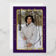 Diese Abschluss-Ankündigungskarten bieten ein sportliches Thema. Das hier aufgeführte Thema ist Baseball, aber es gibt auch andere Sportarten. Die Kartenspitze zeigt den Namen des Schülers, während die Seiten und unten die Abschluss-Informationen anzeigen. Der Text und das Design sind in realer Folie (Gold, Silber und Rose). Die Rückseite der Karte ist leer.