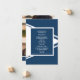Erstellen Sie moderne, blau-weiße Foto-Abschluss-Anzeigenkarten, die Sie an Ihre Familie, Freunde und Kollegen schicken können. Auf einer Seite finden Sie die Details des Abschlusses sowie Informationen zum Party. Auf der anderen Seite wird das Foto des Absolventen sowie das Schuljahr angezeigt. Verwenden Sie die Vorlage zum Personalisieren.