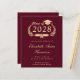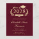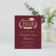 Moderne budgetfreundliche bordeauxrote Uni-Abschluss-Ankündigung mit "Class of" in einer Illustration eines Goldlachkranzes, eines Grades Cap Topper und eines Diploms und des Namens des Absolventen in einem eleganten, leicht vergoldeten Drehbuch. Fügen Sie ihre Schule, Hauptfach, Ehren oder künftige Pläne.