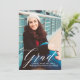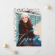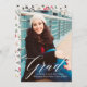 Erzählen Sie Ihren Abschluss stilvoll mit einer eleganten Blumenankündigung im Abschluss. Das Design enthält das Wort "grad" in einem extravaganten Skript-Schriftart, Platzhalter für benutzerdefinierten Text und ein Bild und ein hübsches Blumenmuster auf der Rückseite.