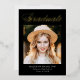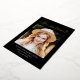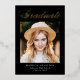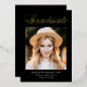 Elegante Abschluss-Ankündigung mit "Graduate" oben in einer Goldfolie-Kalligraphie-Skript mit schwarzem Hintergrund (oder Farbe Ihrer Wahl) angezeigt. Das Foto des Absolventen wird mit seinem Namen, seinem Schulnamen und seinem Abschluss im Folgenden dargestellt. Die Ankündigung des Foto Abschlusses kehrt zurück, um optionalen Text wie z.B. künftige Pläne, Graduierungsparty-Details usw. anzuzeigen. Die schicke Ankündigung des Abschlusses ist ideal, um den Abschluss von Absolventen der Oberstufe und der Uni anzukündigen.