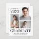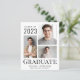 Moderne, preisgünstige Ankündigung mit 3 Fotos, "Graduate" in großer eleganter Typografie und dem Namen, dem Jahrgang und der Schule oder Universität des Grafen in einfacher Typografie.