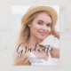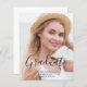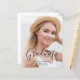 Ankündigung von Budget Foto Abschluss. Das Papier ist dünner als Kartenpapier. Ersetzen Sie das Foto durch Ihr eigenes und ändern Sie den Text. Leicht zu erledigen von der Produktseite.