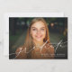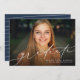 Feiern Sie Ihren Abschluss in der Oberschule oder Uni mit dieser horizontalen Ankündigung eines Abschlusses mit einem Foto, die ein elegantes und modernes Drehbuch auf der Vorderseite und ein marineblau-weiß gestreiftes hinten enthält (klicken Sie auf "Anpassen", um es zu ändern). Das kalligraphische Aussehen des Wortgraduierten auf der Vorderseite ist empfindlich genug, um lassen, Ihr Senior-Foto ist der Schwerpunkt.