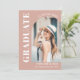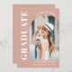 Diese moderne Abschluss Announcement Card besticht durch stilvolle Typografie auf einem rot-rosa Hintergrund. Ersetzen Sie das Foto durch Ihr eigenes und fügen Sie Ihre Daten hinzu.
