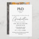 Diese elegante PhD-Abschluss-Ankündigung in Weiß und Schwarz kann mit den Details Ihres Abschlusses und einem Foto auf der Rückseite personalisiert werden. Entwickelt von Thisisnotme©