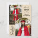 Die Ankündigung des modernen Foto Black Cream Abschluss beinhaltet drei Ihrer Lieblings-Fotos Ihres Absolventen, mit dem Graduiertenjahr, dem Namen und der Schule, Universität oder Uni, Abschluss, Qualifikation oder Zukunftspläne mit dem Wirblen modernen schwarzen Kalligraphie-Skript-Overlay "Graduate". Fügen Sie auf der Rückseite Ihre benutzerdefinierte Nachricht hinzu. Einfach, stilvoll und elegant. Erstellt von ©2025 Evco Studio www.zazzle.com/store/evcostudio