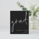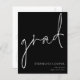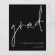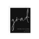 Ein Preis SMALLER 4,5" x 5,6" Alternative. Erhältlich in einem SEMI-GLOSS 110 lb CARD STOCK, der die Standardoption (dicker für Einladungen) ist, ODER einem SATIN FINISH 80 lb THINNER PAPER STOCK (ideal für Gehäuse). Umschläge sind optional und etwas größer als die Kartengröße. Diese einfache weiße Typografie auf klassischem Schwarz-Design, um die Neuigkeiten Ihres Absolventen bekannt zu geben, hat informelles Set Handschrift Stil Skript für den Haupt-Header, Grad, und leicht zu personalisieren Typografie auf der unteren rechten Seite mit Ihren Details und auch Ihre Nachricht auf der Rückseite.